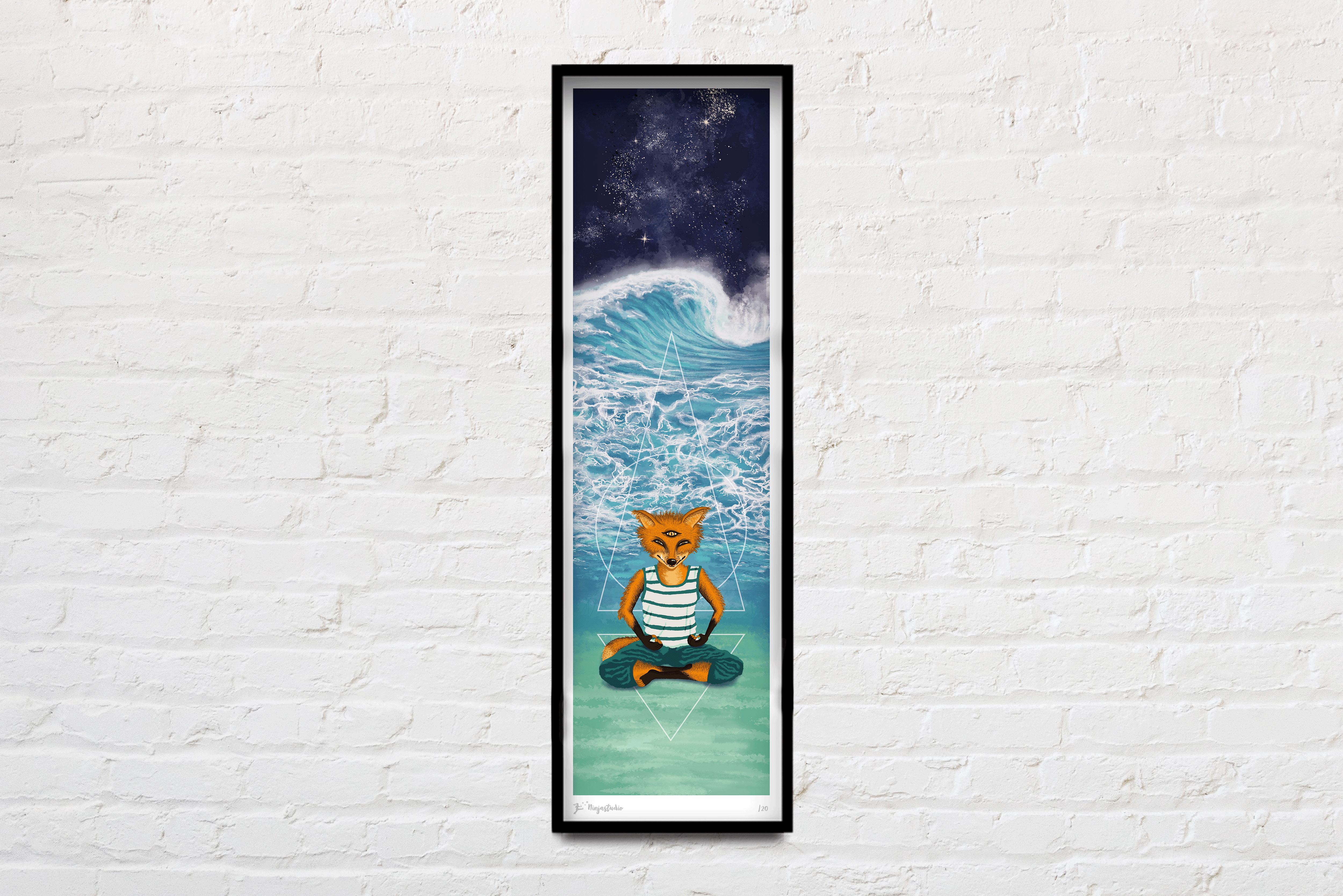Zusammen mit dem Team vom Boardsportladen Cloud 9 in Winterthur kam es zu dieser Design-Kooperation. Unter dem Motto Design von Winterthur für Winterthur, illustrierte Ninjastudio die Grafik von dem Longboarddeck für dieses handgefertigte Skateboard. Mit diesem Projekt konnte ich meine Begeisterung für Yoga und Skateboarding verbinden. Mit der Welle und den Sternen über dem Fuchs welcher im Lotussitz auf dem Meeresgrund weilt, drückt die Illustration die Haltung bzw. das “mindset” von Surf- bis Skateboarding aus, um die innere und äussere Balance zu halten. Die blauen Wheels wählten wir in Absprache zum Design. Das tiefgelegte Longboard das sich gut zum “cruisen” eignet, mit Francisco dem Fuchs drauf, gibt es auf Anfrage bei Cloud 9 zu kaufen.